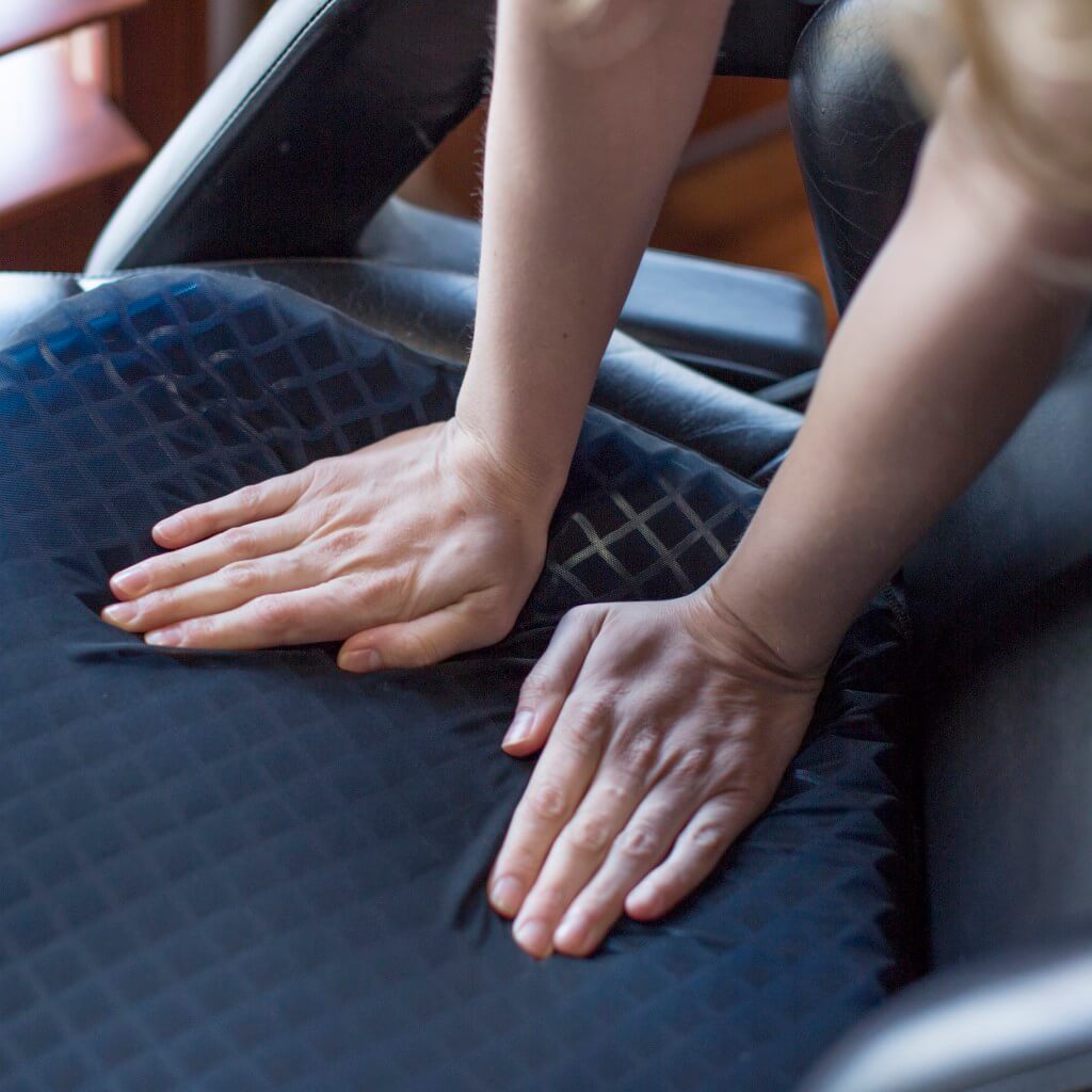 Now available in a larger size, this cooling gel pad is the answer to your aches and pains after a day in the office. Made of medical grade cooling gel material, this cushion eliminates uncomfortable pressure points. Our cushion can help prevent, alleviate, and treat a variety of pain conditions from coccyx issues, lumbar strain and sciatica, to degenerative disc disorders.